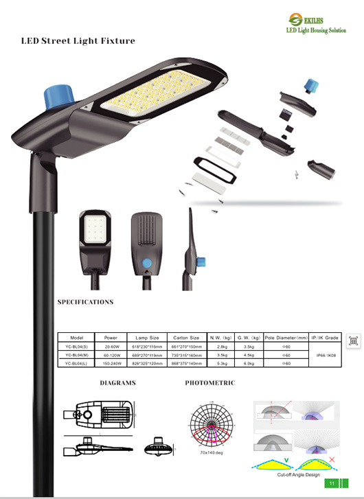 | ЕК-БЛ04(С) | 618*230*116 | 20в-80в (стуб лампе 60мм) | Алуминијумско кућиште, каљено стакло, гумени прстен, шрафови |