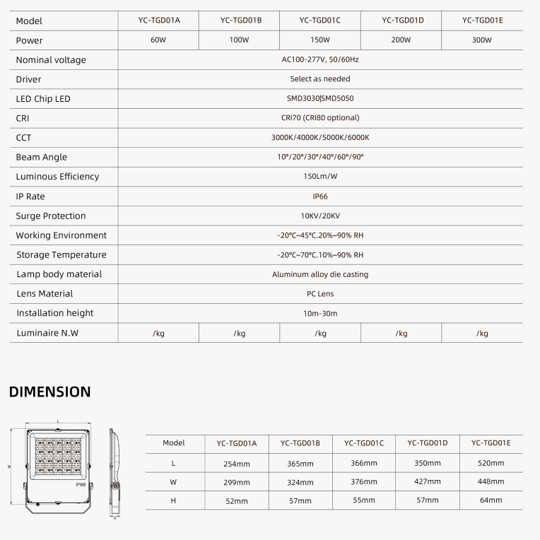 | YC-TGD01-50W | 358*294*52 | 50в | Heat sink Aluminum body,Glass,Bracket,304 screws, ПЦБ, ЛЕНС. |
